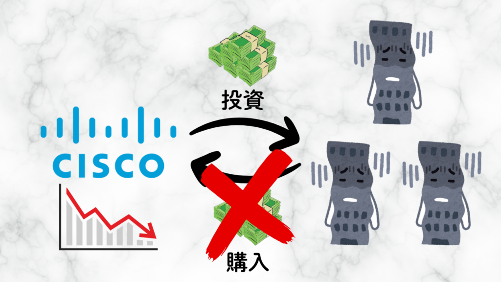 そんなシスコはできたてのベンチャーなどに多額の投資をして、投資を受けたベンチャー企業はそのお金でシスコのルーターやスイッチを買い、シスコの見かけの売り上げはどんどん増加していきました