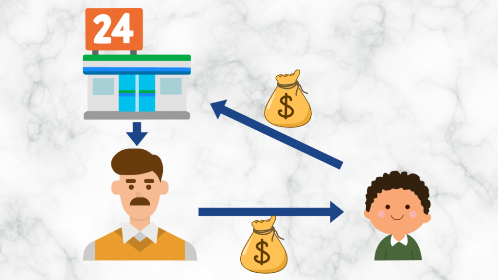 これはコンビニで働いているお父さんの子どもが、お父さんからもらったお小遣いで、そのコンビニで買い物をして「売上が上がった」と言っているようなもので