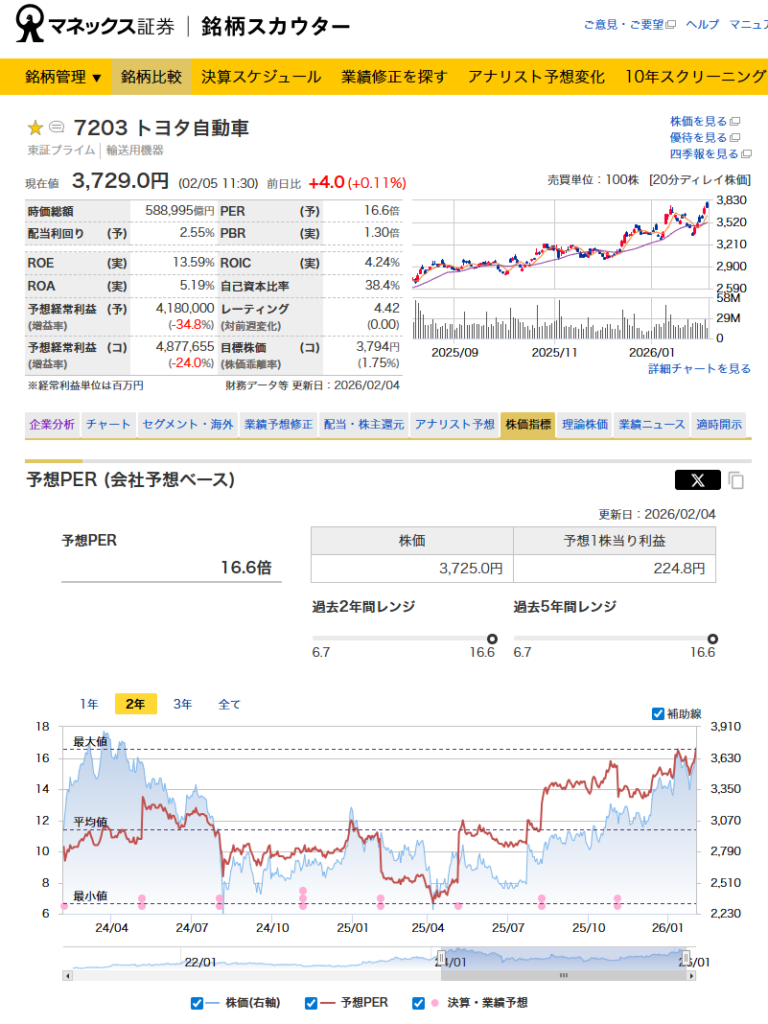 これは株価が1株あたりの利益の何倍になっているかを示す指標なんですね