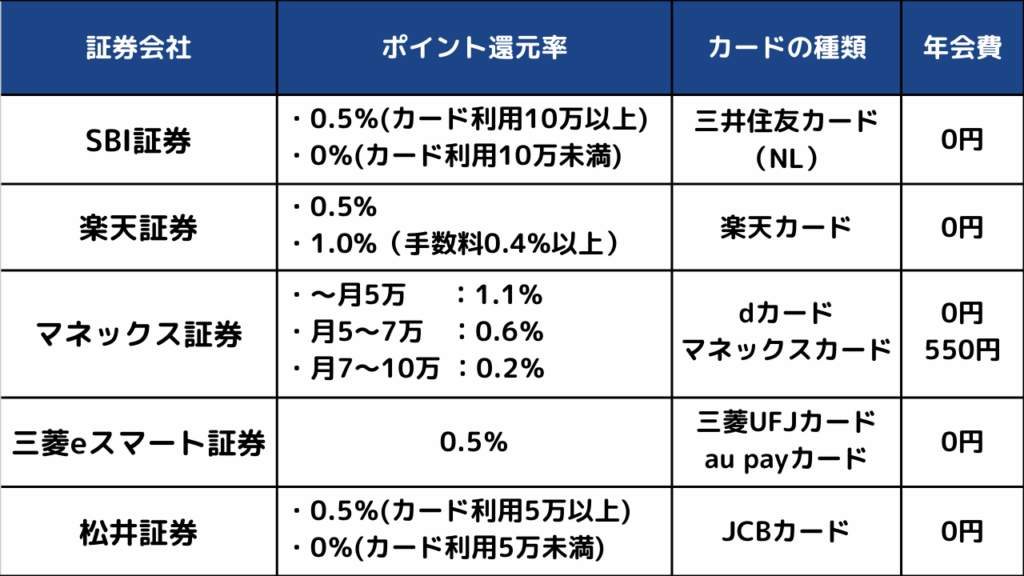大手ネット証券5社 クレカ積立のポイント還元率の比較